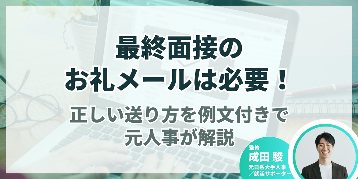 最終面接の後、お礼メールを送るべきか迷う就活生は多いです。人事として多くの就活生を見てきた成田さんは「迷うなら送るべき」と断言します。その理由を解説します。