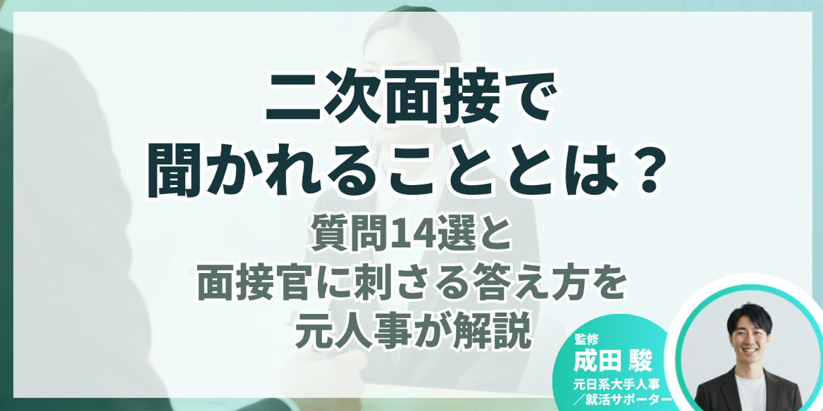 本記事では、元日系大手人事で、en-courageの就活サポーターとして延べ3,000名以上の学生を支援してきた成田さん監修のもと、二次面接で聞かれる頻出質問と回答例、通過するためのポイントを解説します。
