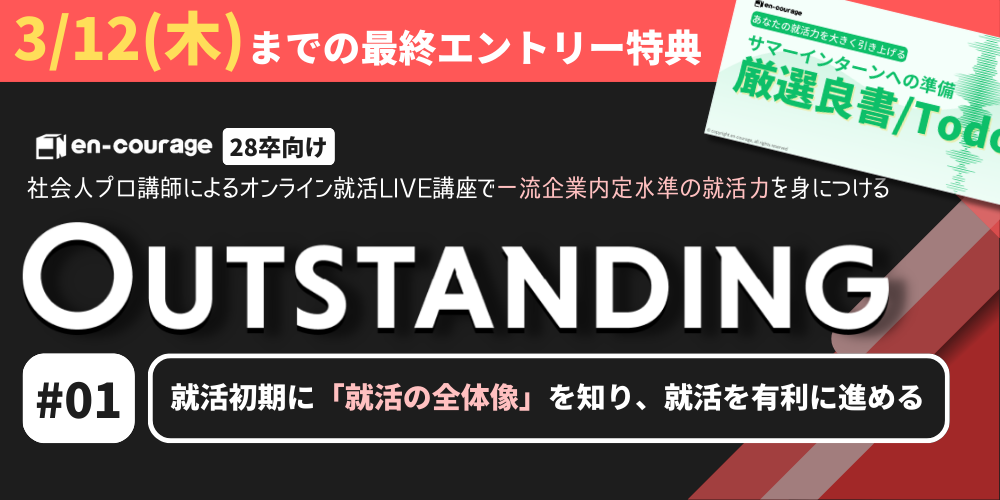 【第3位】『OUTSTANDING』 【1期_1講】就活初期に「就活の全体像」を知り、就活を有利に進める