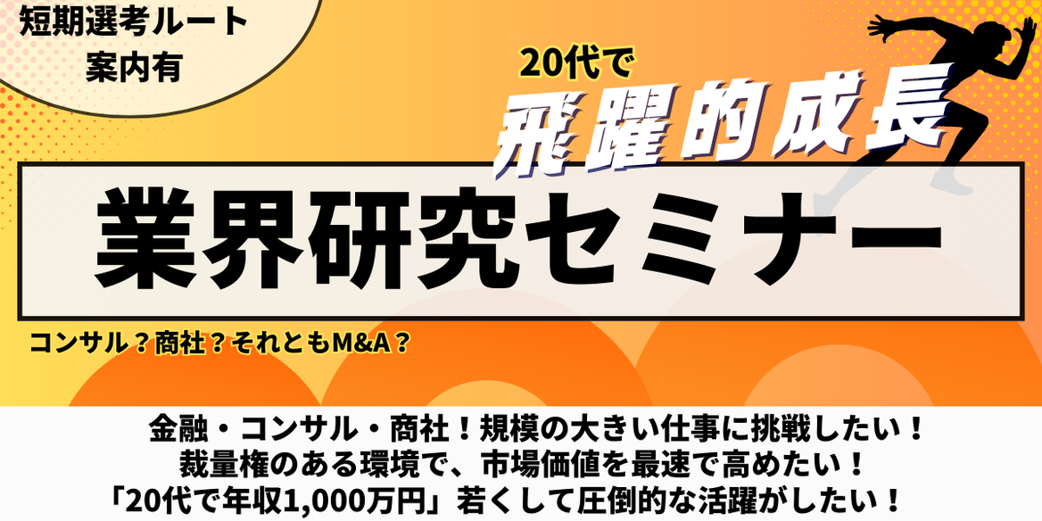 【選考直結!20代で年収1000万目指せる】M&A業界研究が60分で完結するオンラインセミナー