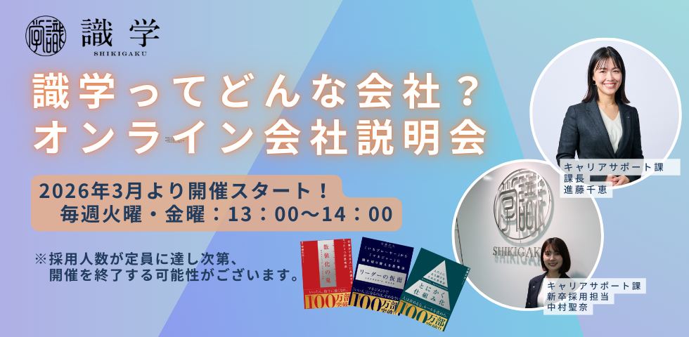 「漢字二文字!!一体どんな会社なの?」と疑問に思われる方も多いかと思います!そこで識学の採用担当が皆さんに馴染みのありそうな身近な事例や、実際のコンサルタント事例を交えながら、