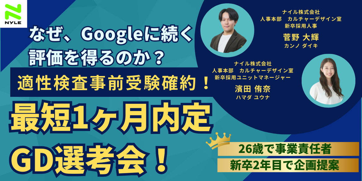 ミッションに「幸せを、後世に。」を掲げ、社会に根付いた事業を創出してきたナイルが、会社説明会・GD選考会を開催します