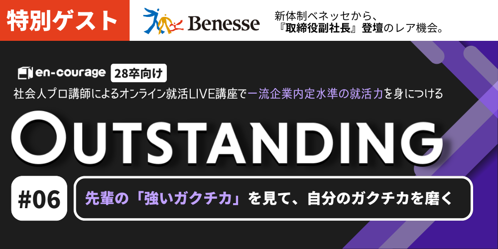 アウトスタンディングは、27卒の先輩が2万人以上参加した日本最大級の『オンライン就活 LIVE 講座』です。