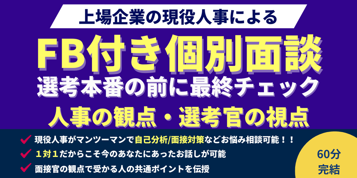 この面談ではあなたの心配事、悩みを含めあなたなりの正解を見つけるために上場企業現役人事がサポートいたします。