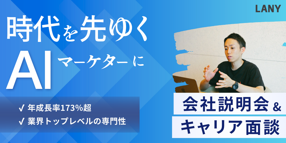 本イベントでは創業メンバーが登壇し、会社説明会や最も注力しているLLMOコンサルティングの支援内容などに加え、プロの視点であなたのキャリアを壁打ちする「個別相談会」も実施いたします。業界の現状や未来についてや、LANYで働くことのやりがいなどリアルを伝える1時間となっております。