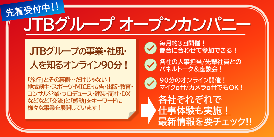 《先着受付中!》JTBグループオープンカンパニー