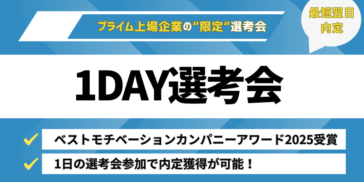 【最短翌日内定】プライム上場企業による1DAY選考会
