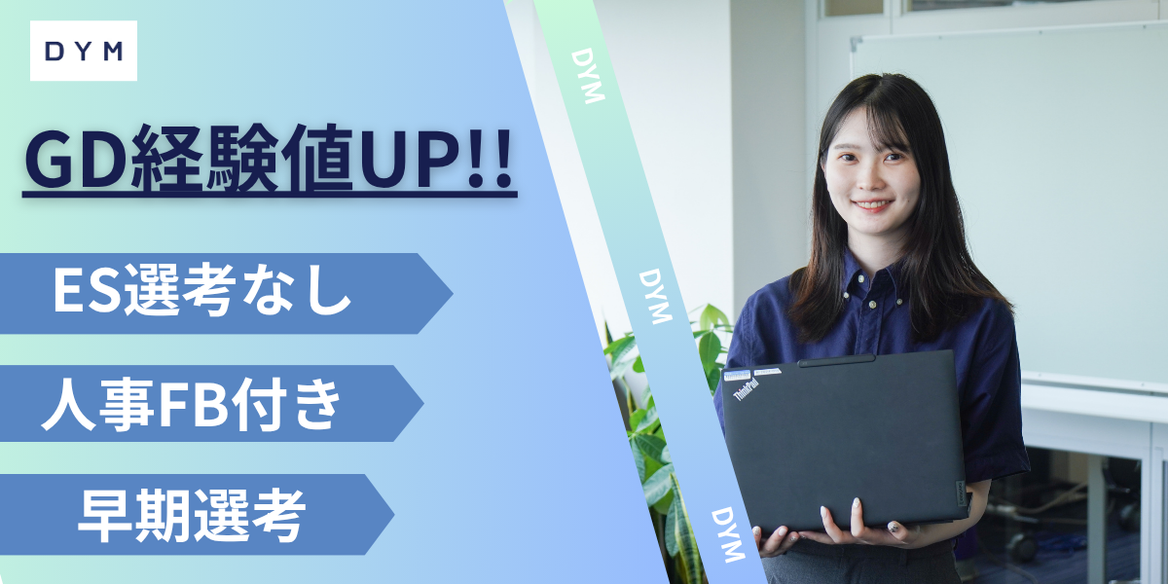 昨年度エンカレッジ(6月度)にて、人気インターンランキング第1位(2025年7月1日時点)獲得したDYMが実施するハイレベルなGD選考です!