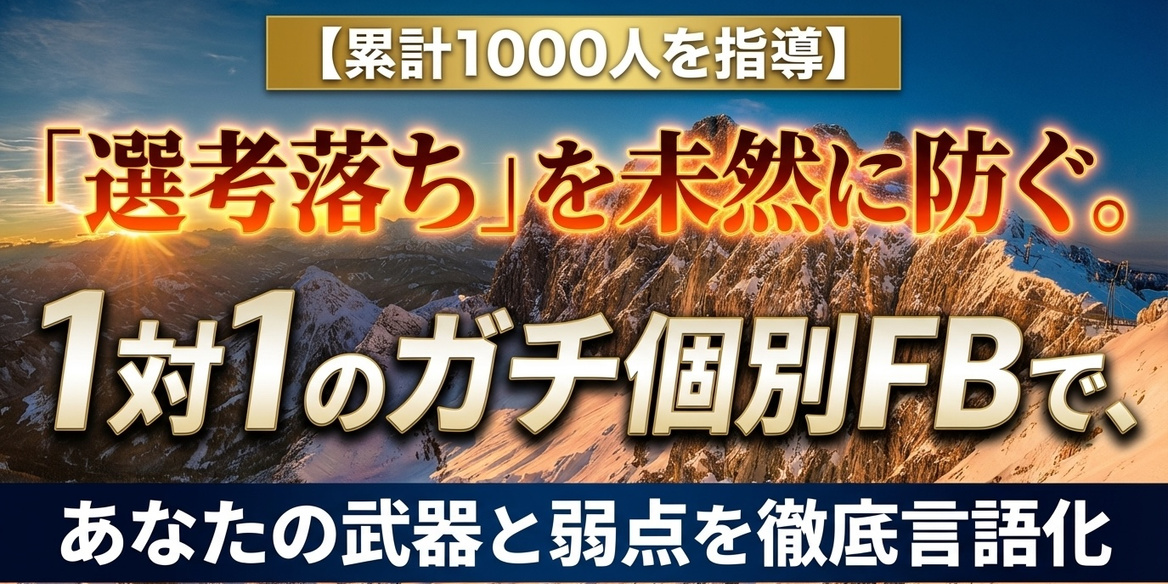 【累計1000人を指導】「選考落ち」を未然に防ぐ。1対1のガチ個別FBで、あなたの武器と弱点を徹底言語化