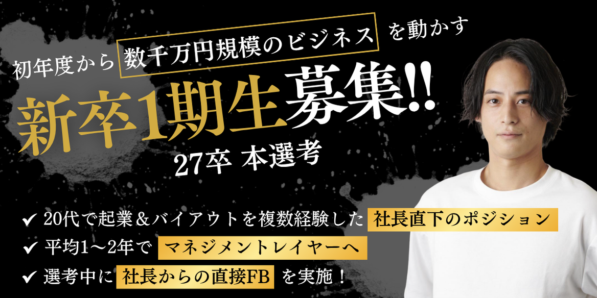 君が持つ才能と野心を、本物の事業創造と経営力に変える覚悟が君にあるかを見極めたい。