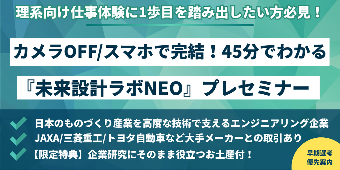 【カメラオフOK】45分でわかる『未来設計ラボNEO』プレセミナー|企業研究に役立つ特典付き