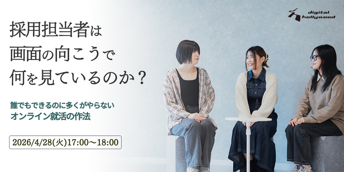 対面の説明会で最前列に座り、手を挙げて質問するのは勇気が要ります。でもオンラインなら、そのハードルはぐっと下がります。知識と少しの準備があれば、対面では難しかった差別化がオンラインでは可能になります。このウェビナーでは、デジタルハリウッドの採用担当者が「画面の向こう側で実際に何を見ているか」を率直にお話しします。