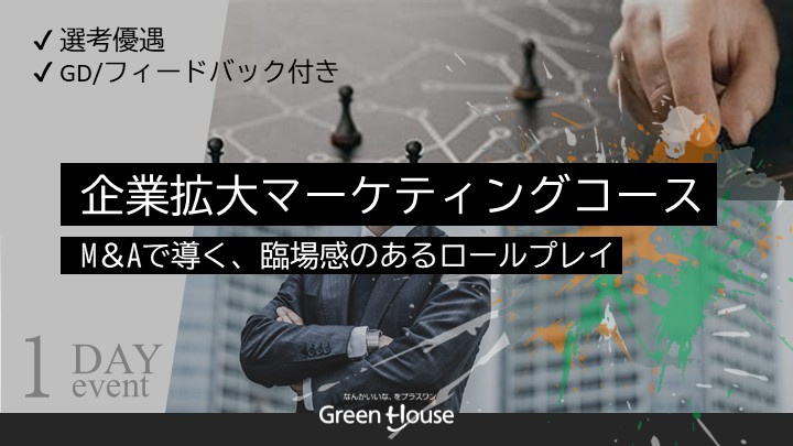28卒【就職企業人気ランキング業界1位】企業拡大マーケティングコース 成長を企業買収(M&A)で導く、臨場感のあるロールプレイ #食#GD#グループディスカッション#M&A#インターン#早期選考あり#ロープレ